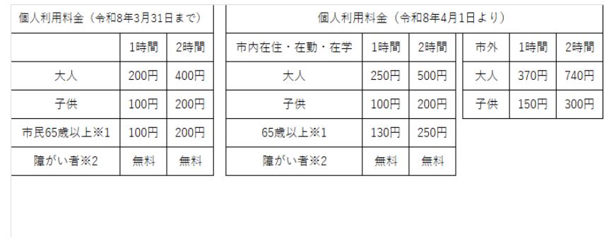 | 利用時間 | 4月~9月 10:00〜21:00 10月~3月 10:00〜20:00 |